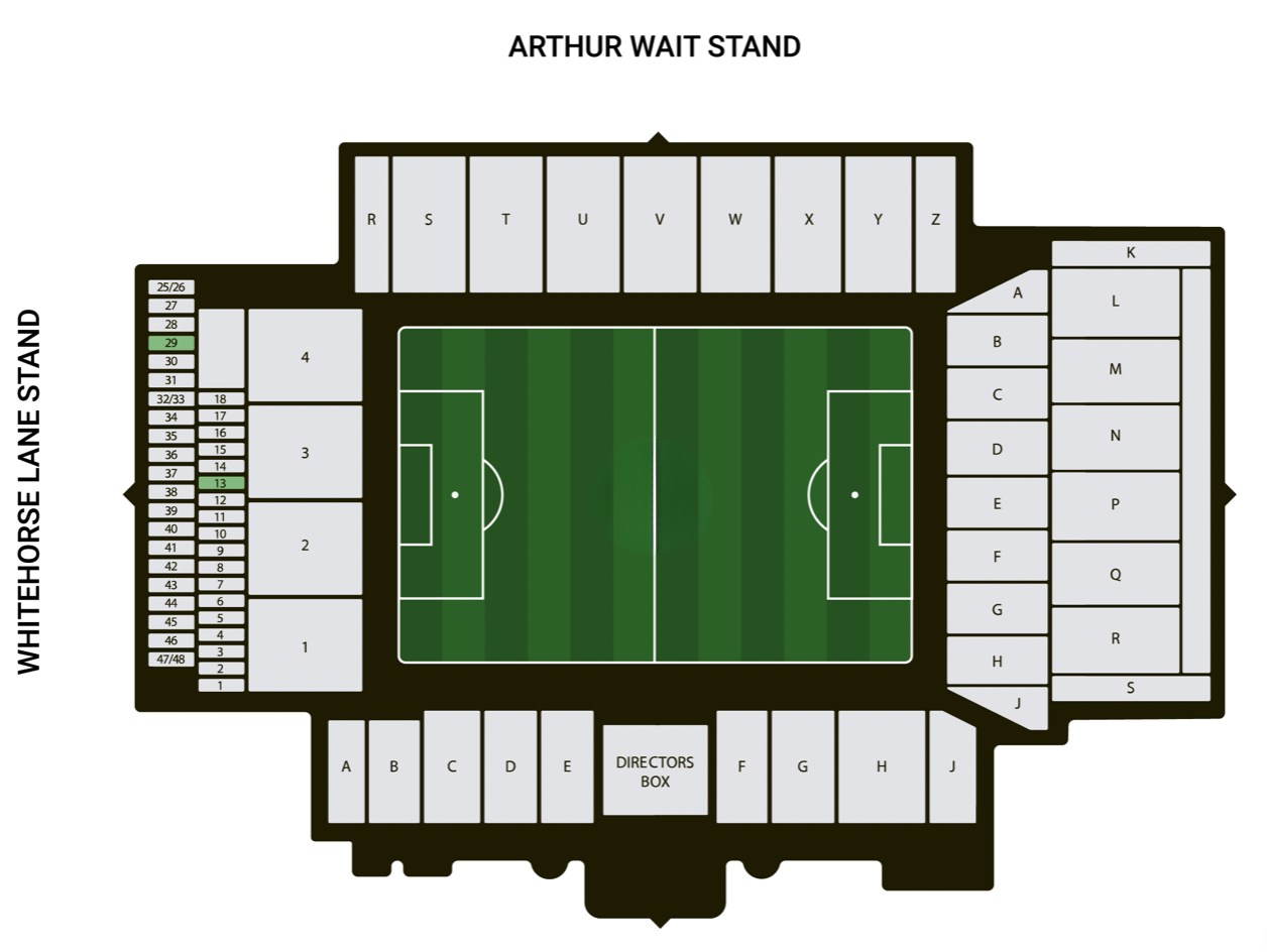 White Horse Lane Box (Box 12/13) with great pitch views above the goal. Must be sold as Pairs or as a Four.