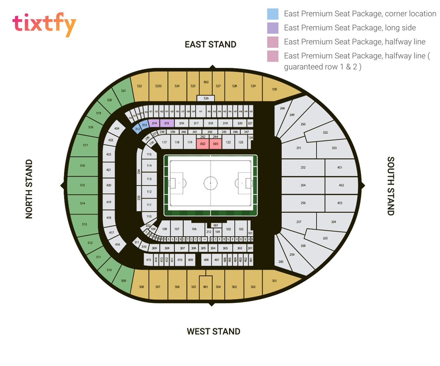 Padded seats. East Premium seating Tier 3, North/East corner location Blocks 312/313